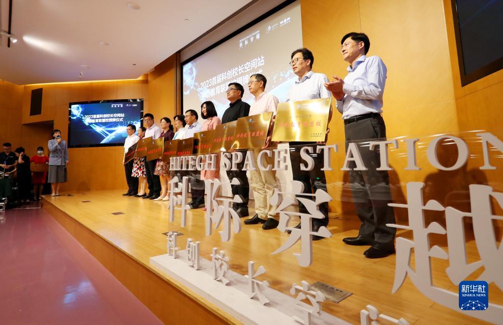 6月30日拍攝的“科際穿越-科創(chuàng )校長(cháng)空間站”啟動(dòng)儀式上舉行的科創(chuàng )校長(cháng)空間站科創(chuàng )教育聯(lián)盟校授牌儀式現場(chǎng)。