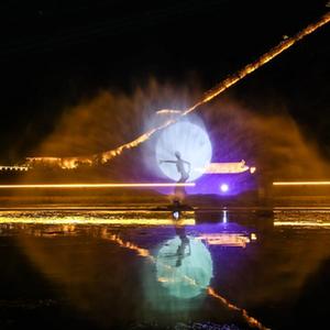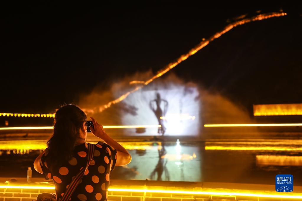 6月30日,游客在葫蘆島市綏中縣九門(mén)口長(cháng)城景區觀(guān)看水幕電影。