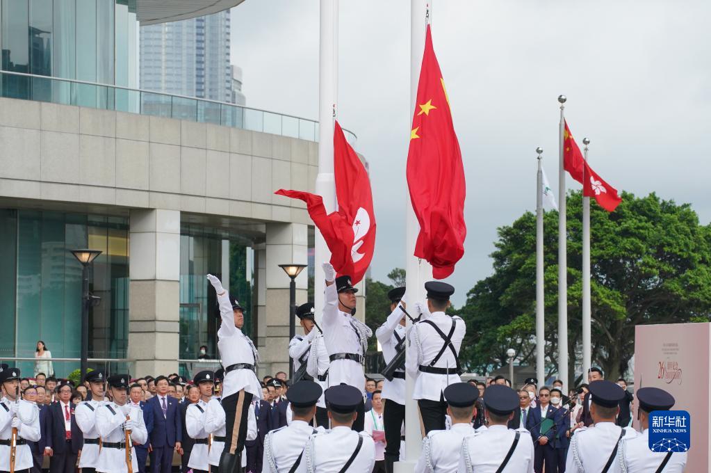 7月1日,香港特區政府在金紫荊廣場(chǎng)舉行升旗儀式,慶祝香港回歸祖國26周年。