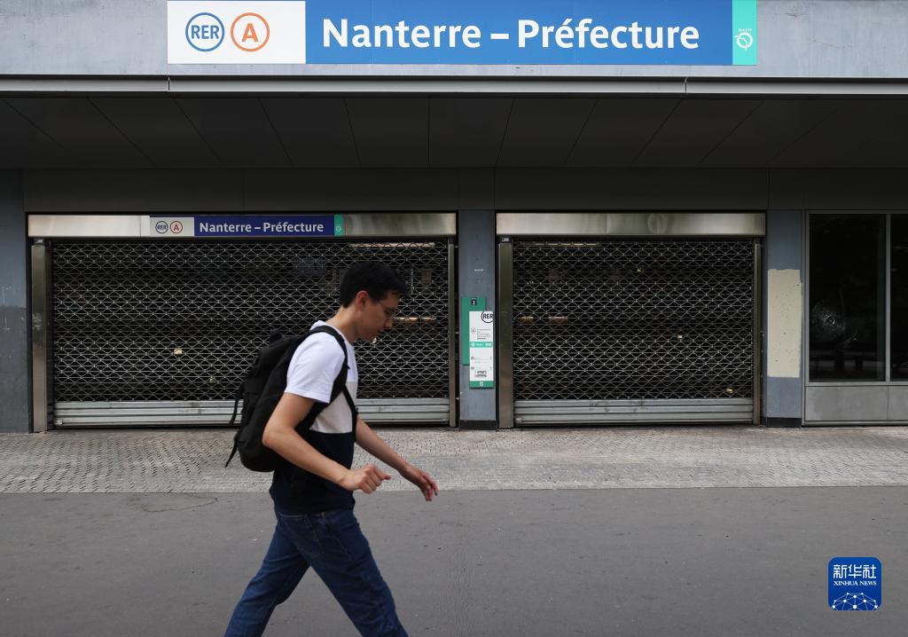 6月30日,在法國上塞納省楠泰爾市,一名男子走過(guò)關(guān)閉的地鐵站。