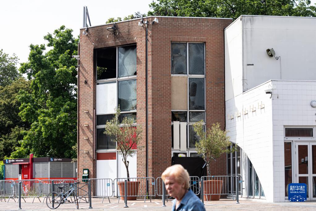 這是6月30日在法國北部小城埃萊姆-里爾拍攝的騷亂中被破壞的幼兒園。