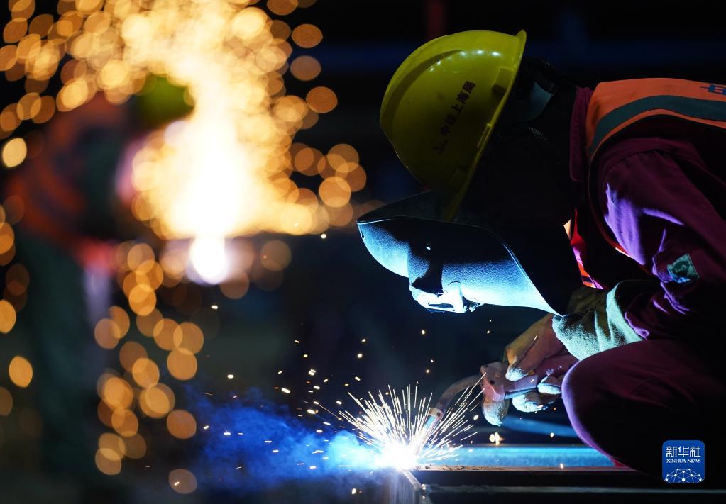 6月30日,施工人員在中鐵上海工程局藍田制梁場(chǎng)加工箱梁模板。