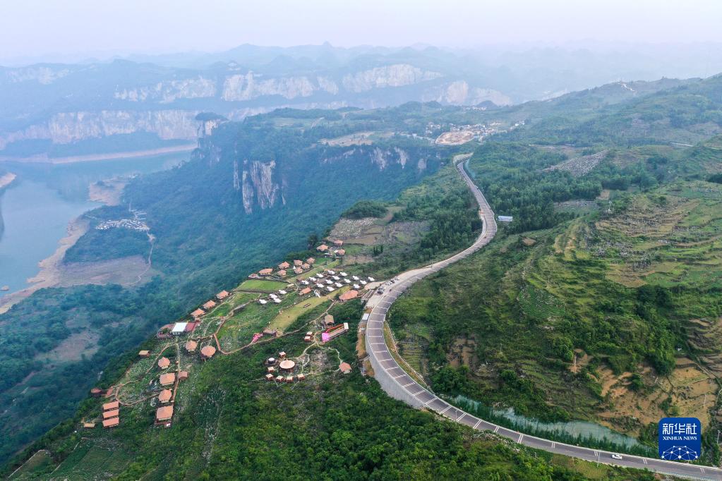 這是貴州省黔西市新仁苗族鄉化屋村沿岸的露營(yíng)基地(5月30日攝,無(wú)人機照片)。