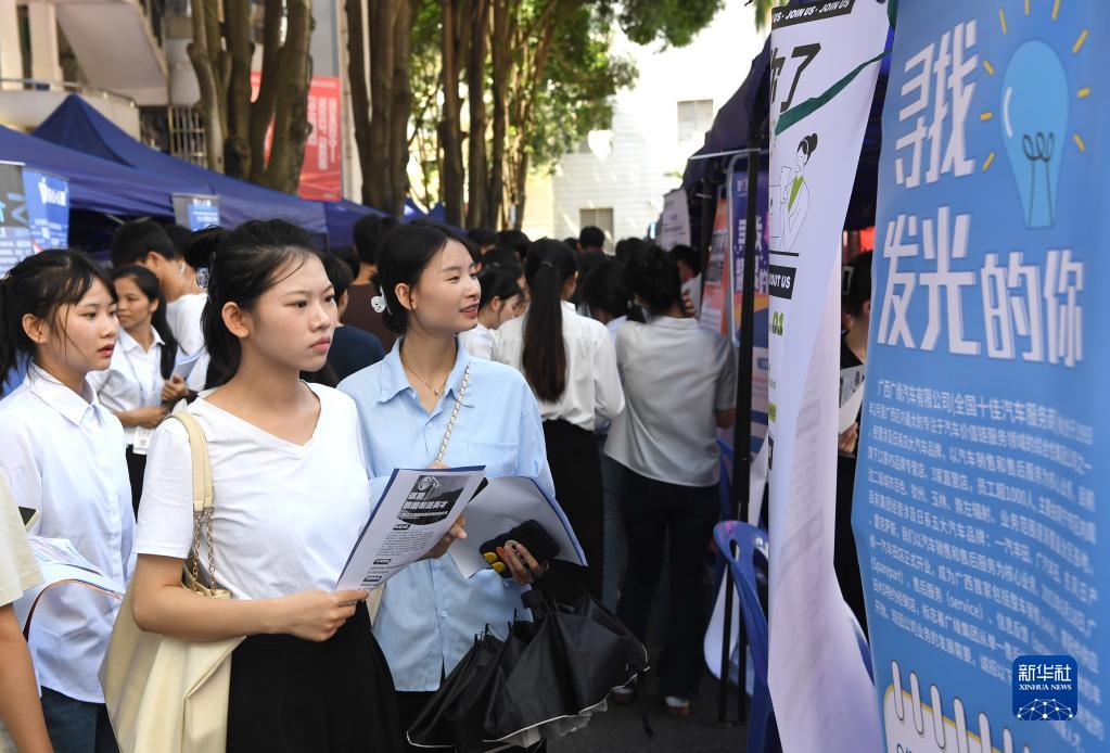 7月1日,畢業(yè)生在廣西國際商務(wù)職業(yè)技術(shù)學(xué)院校園雙選會(huì )上尋找合適崗位。