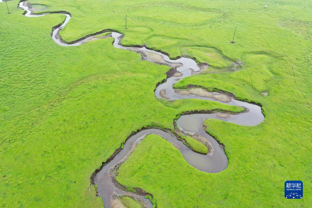 當下,甘肅省定西市岷縣狼渡灘草原水草豐茂,曲折蜿蜒的河流靜靜流淌,岸邊牛羊漫步,原野駿馬馳騁,構成一幅壯美的畫(huà)卷。