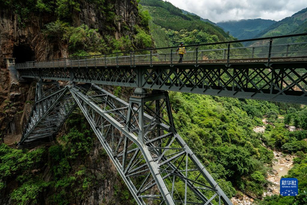 滇越鐵路是云南省第一條鐵路,米軌火車(chē)已在這條鐵路上穿行百余年。在滇越鐵路屏邊縣段,有一座標志性的“人字橋”,在懸崖峭壁間挺立百余年。
