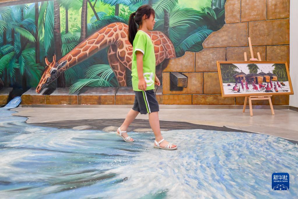 7月1日,在中非經(jīng)貿合作促進(jìn)創(chuàng )新示范園(湖南高橋大市場(chǎng))的烏干達國家館,小朋友在參觀(guān)展品。