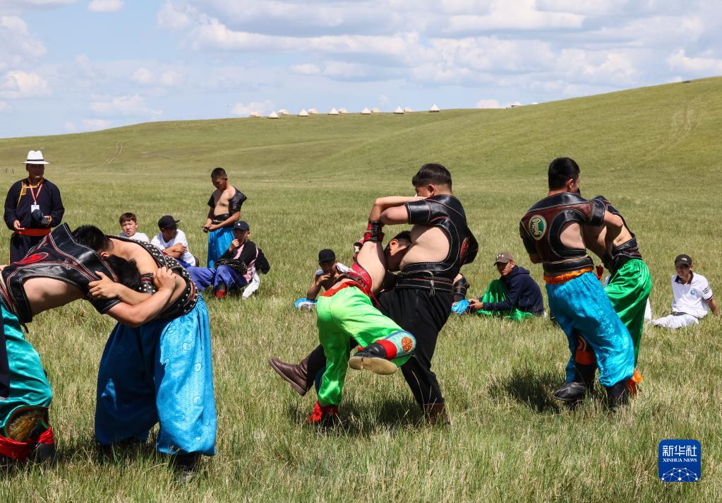 7月1日,小選手們在進(jìn)行搏克比賽。