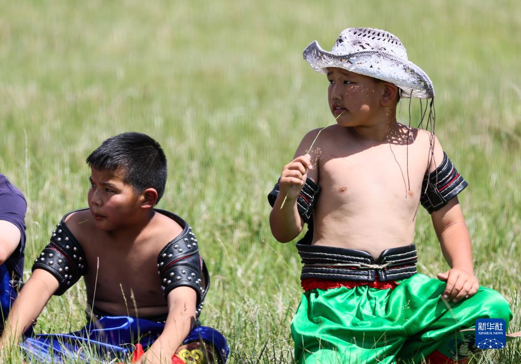 7月1日,參加搏克比賽的小選手們準備上場(chǎng)。