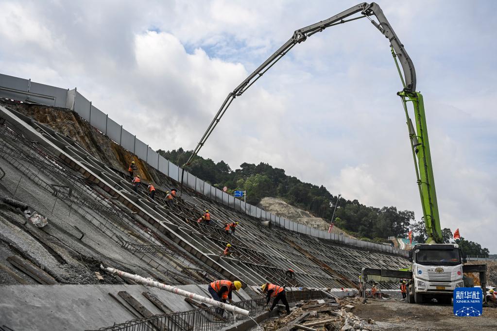 連日來(lái),在位于廣西靈山縣的平陸運河馬道樞紐建設現場(chǎng),工人們加緊施工,建設項目正按計劃有序推進(jìn)。