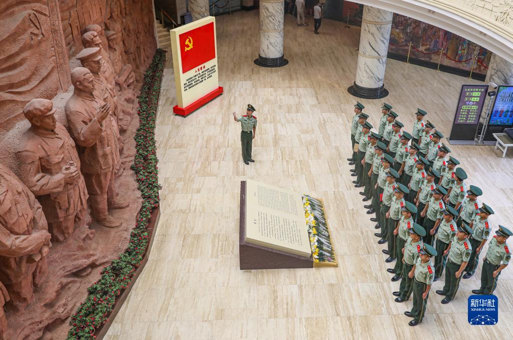 武警廣西總隊百色支隊組織官兵到百色起義紀念館參觀(guān)見(jiàn)學(xué)(6月29日攝)。