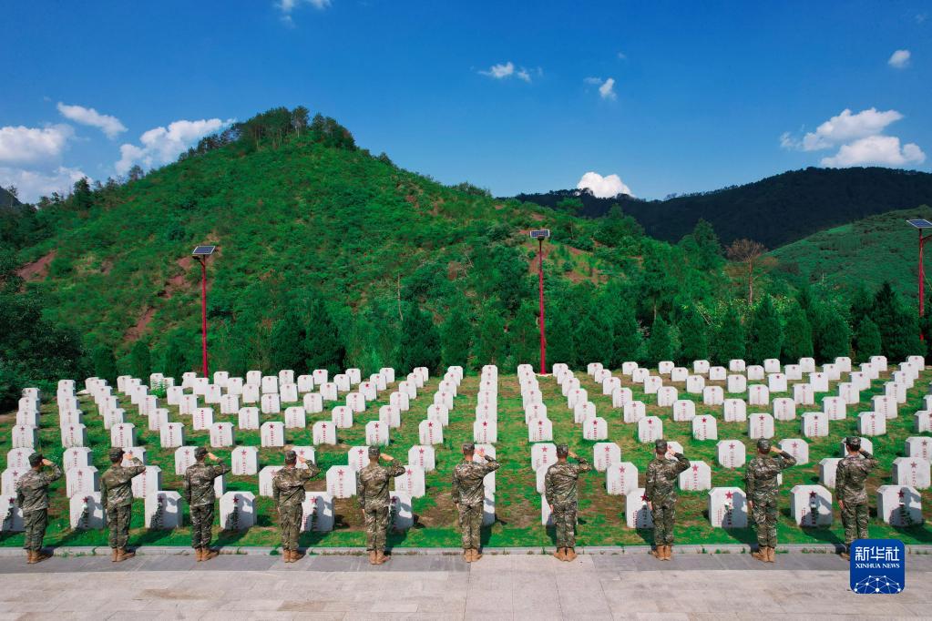 武警貴州總隊遵義支隊組織官兵到青杠坡紅軍烈士陵園緬懷革命先烈(6月29日攝)。