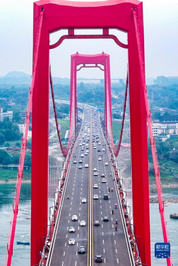 7月1日,車(chē)輛通行在四川瀘州長(cháng)江二橋上。