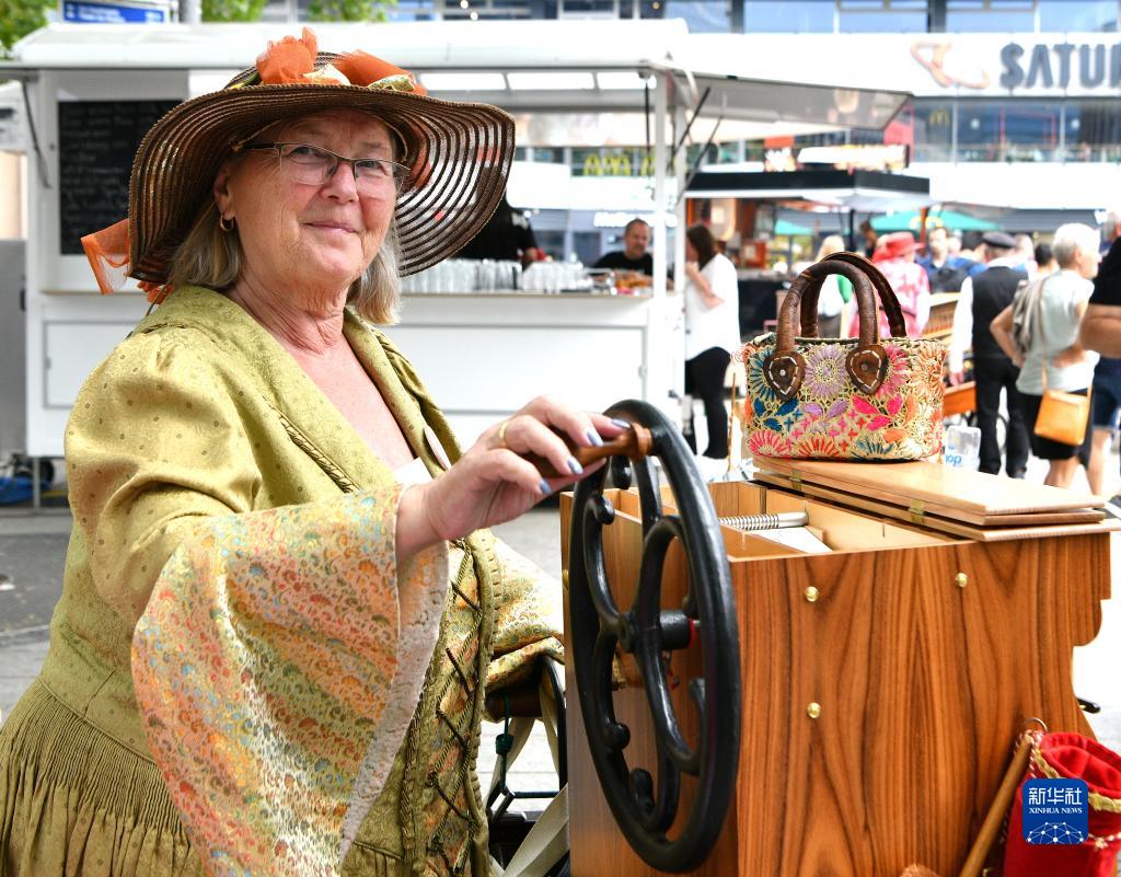 7月1日,手搖風(fēng)琴表演者在德國柏林國際手搖風(fēng)琴藝術(shù)節上表演。新華社記者 任鵬飛 攝