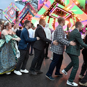 莫斯科高爾基公園當日為中學(xué)畢業(yè)生舉行慶?;顒?dòng)。