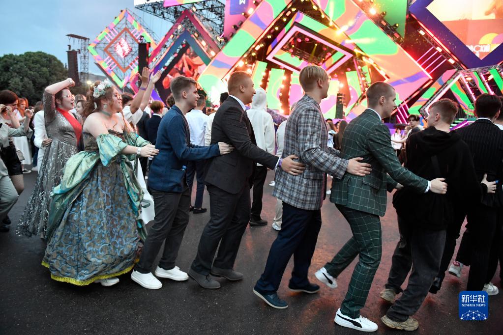 莫斯科高爾基公園當日為中學(xué)畢業(yè)生舉行慶?;顒?dòng)。