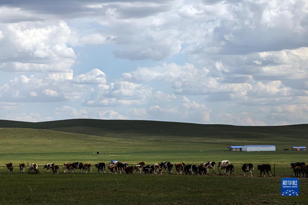 6月29日,牛群在草原上覓食。
