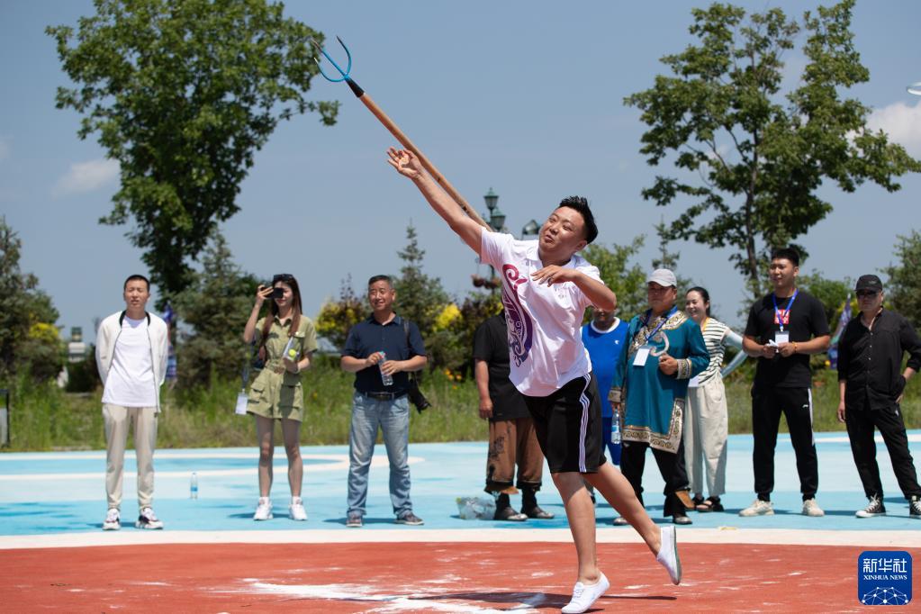 7月2日,在第十一屆赫哲族烏日貢大會(huì )現場(chǎng),赫哲族選手參加叉魚(yú)比賽。