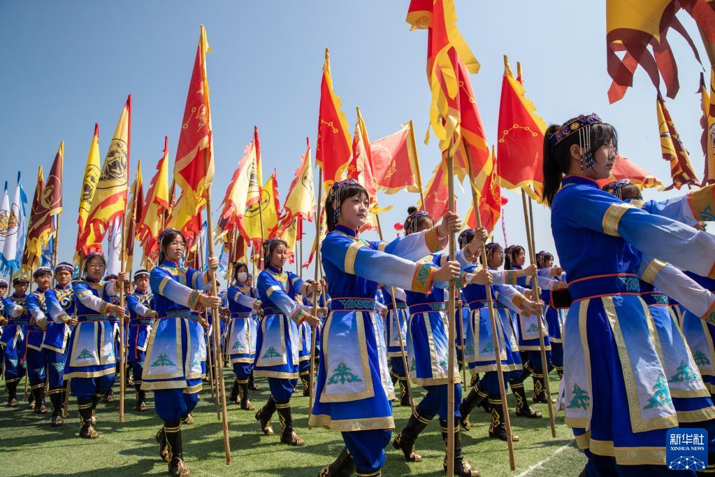 7月2日,學(xué)生身著(zhù)赫哲族傳統服飾參加第十一屆赫哲族烏日貢大會(huì )。