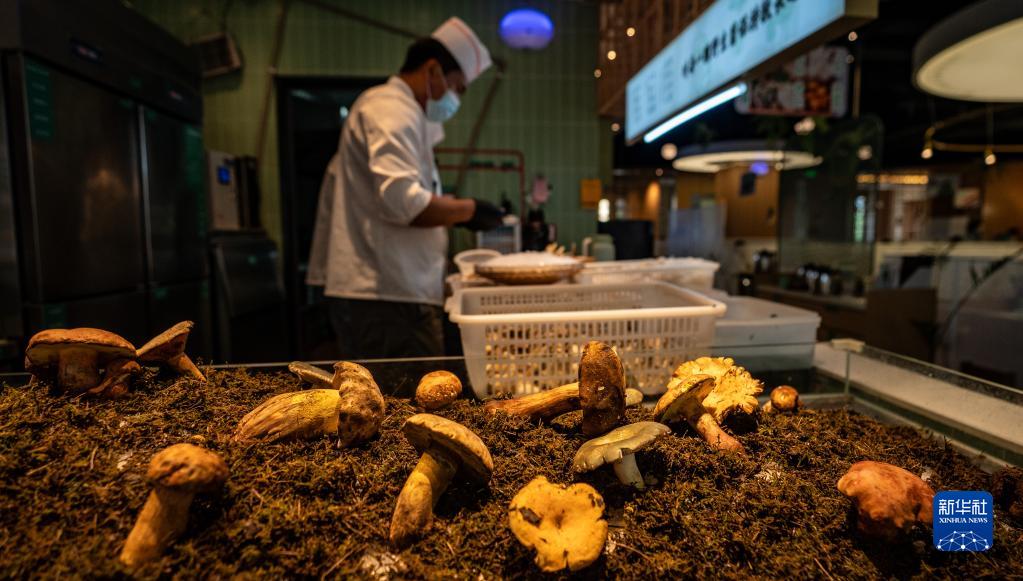 7月2日,昆明一家飯店的工作人員整理準備烹飪的野生菌。