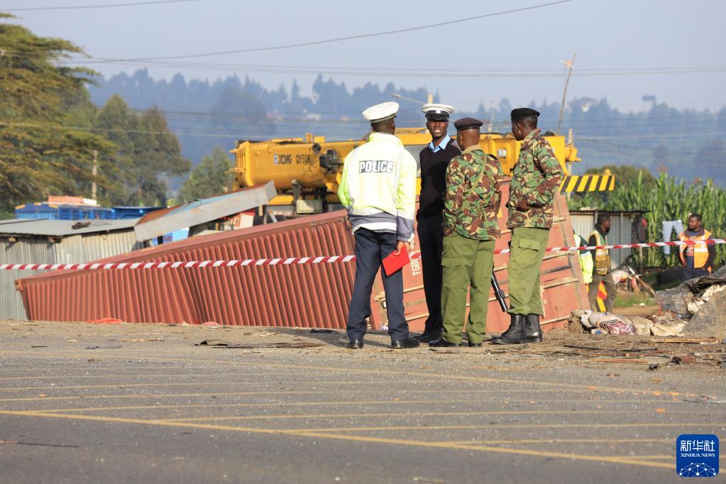 7月1日,警察在肯尼亞西北部凱里喬郡隆迪亞尼鎮附近的車(chē)禍現場(chǎng)工作。