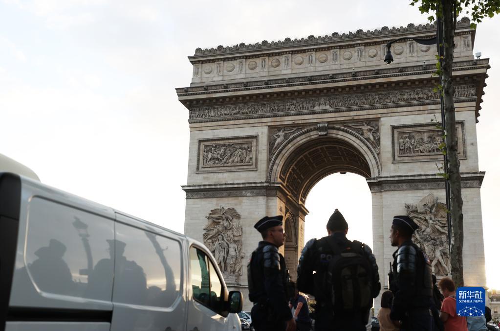 7月2日晚間,警察在法國巴黎凱旋門(mén)附近巡邏。
