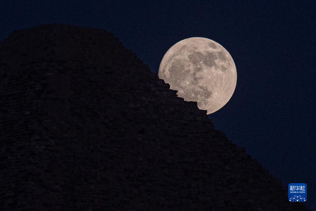 這是7月2日在埃及吉薩胡夫大金字塔旁拍攝的滿(mǎn)月。