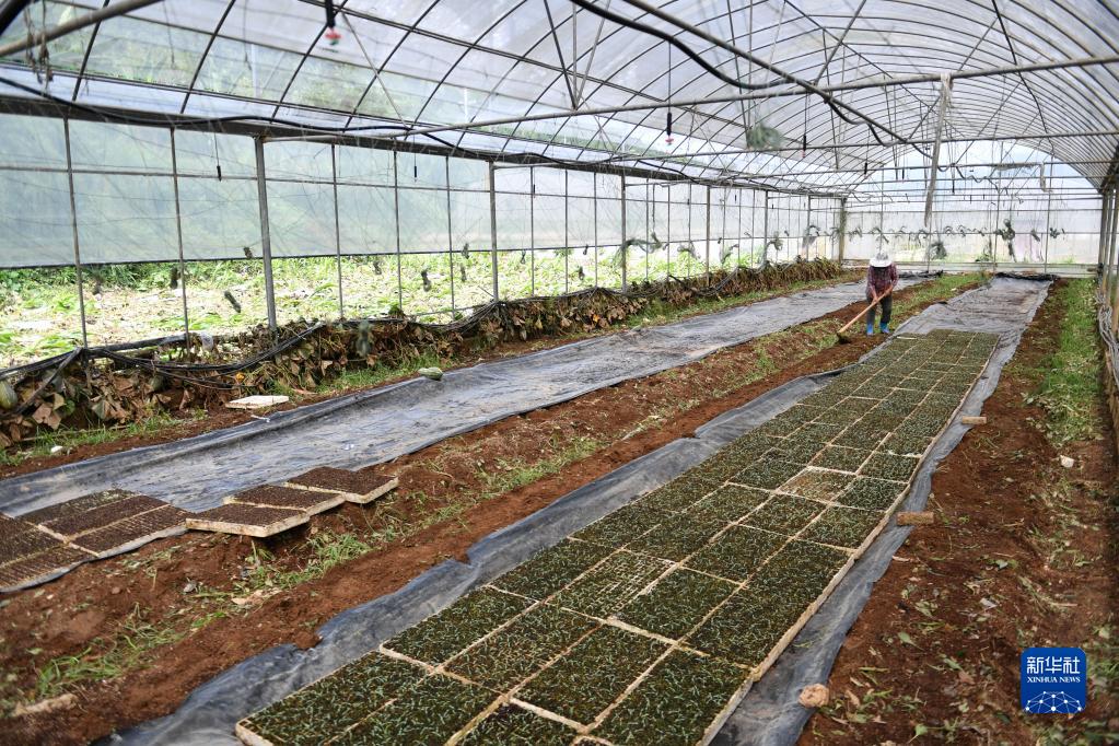 7月3日,在湖南湘西州保靖縣陽(yáng)朝鄉溪洲村一處農業(yè)基地,農民在打理蔬菜苗。