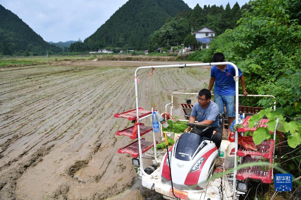 7月3日,在湖南湘西州保靖縣陽(yáng)朝鄉梭落坪村,農民在補種水稻秧苗。
