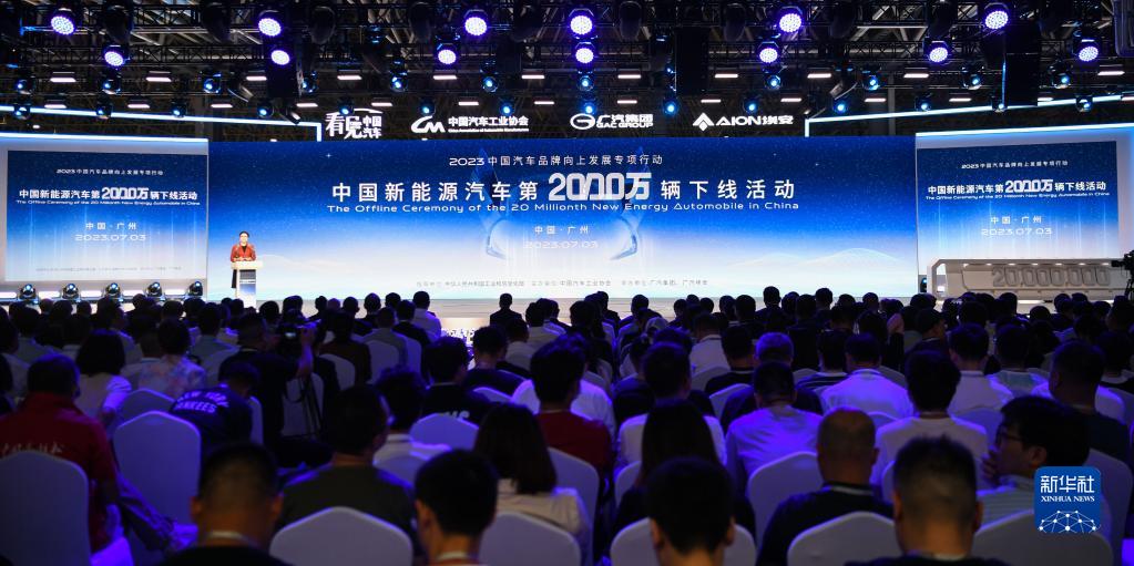 7月3日,中國新能源汽車(chē)第2000萬(wàn)輛下線(xiàn)活動(dòng)在廣州廣汽埃安第一智造中心舉行。