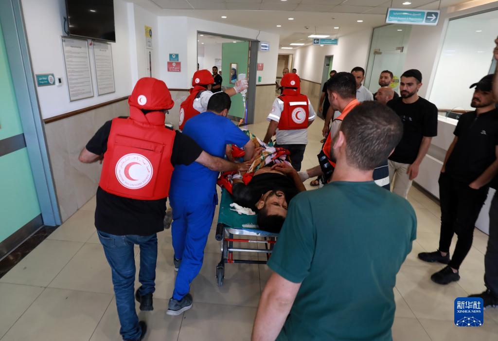 7月3日,在約旦河西岸杰寧地區,醫務(wù)人員將傷者送往醫院。