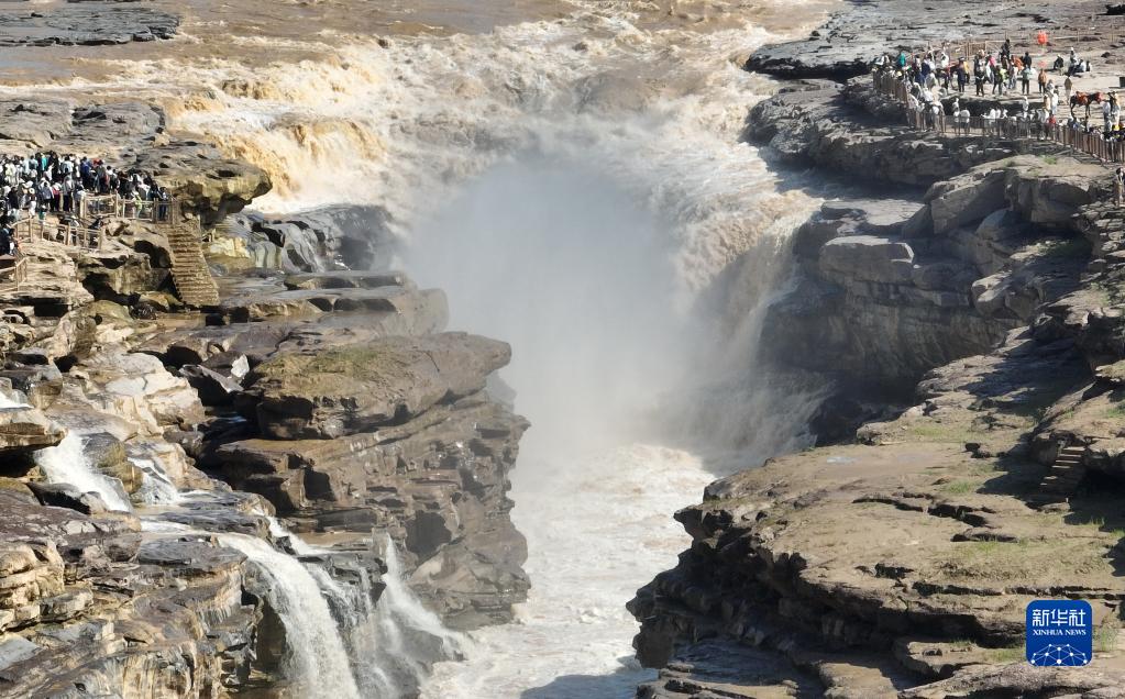 暑期,眾多游客來(lái)到位于陜西宜川縣和山西吉縣交界處的黃河壺口瀑布游覽,領(lǐng)略壺口瀑布美景。