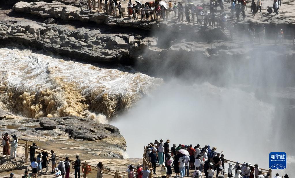 暑期,眾多游客來(lái)到位于陜西宜川縣和山西吉縣交界處的黃河壺口瀑布游覽,領(lǐng)略壺口瀑布美景。