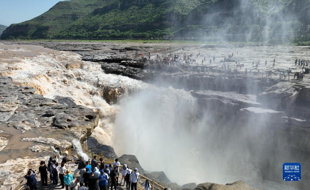 暑期,眾多游客來(lái)到位于陜西宜川縣和山西吉縣交界處的黃河壺口瀑布游覽,領(lǐng)略壺口瀑布美景。