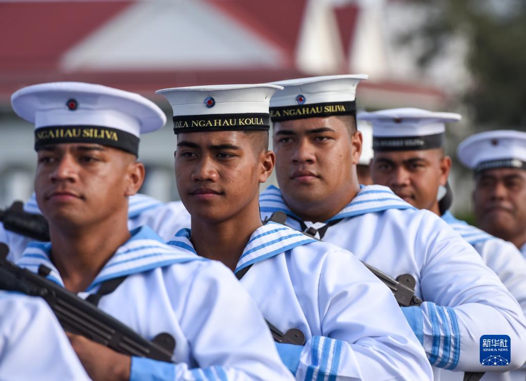 7月4日,軍人在湯加首都努庫阿洛法參加閱兵式。