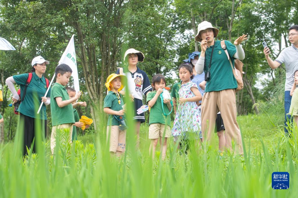7月3日,研學(xué)課老師在廣陽(yáng)島的“生態(tài)研學(xué)課程”上向家長(cháng)和孩子們講述廣陽(yáng)島的生態(tài)修復故事。