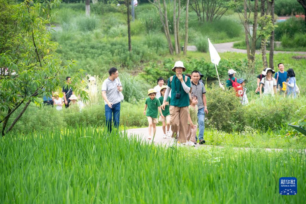7月3日,家長(cháng)和孩子們在廣陽(yáng)島的“生態(tài)研學(xué)課程”上現場(chǎng)感受廣陽(yáng)島的生態(tài)文化。