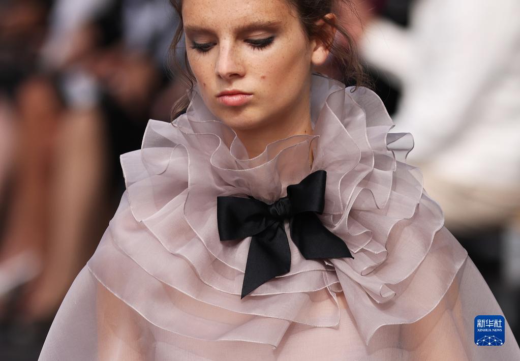 7月4日,在法國巴黎塞納河邊,模特展示法國品牌香奈兒2023/2024秋冬高級定制新品。