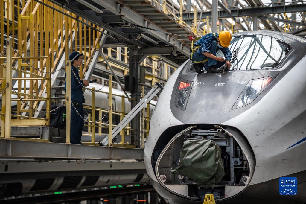 暑運期間,中國鐵路昆明局集團有限公司昆明車(chē)輛段的工作人員加大對動(dòng)車(chē)的檢修保養力度,確保每一組動(dòng)車(chē)組“健康”上線(xiàn),守護旅客平安出行。