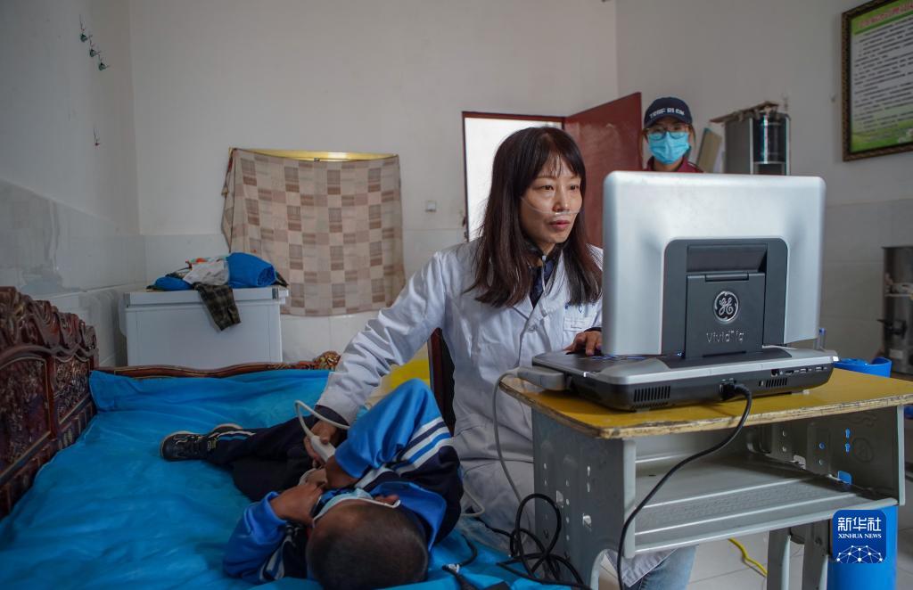 7月4日,“心佑工程”項目團隊醫生給疑似患兒做心臟彩超。