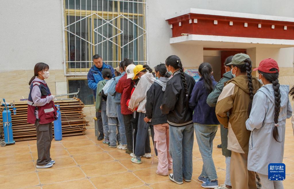 7月4日,那曲市色尼區適齡兒童、青少年排隊等待做心臟聽(tīng)診。
