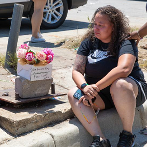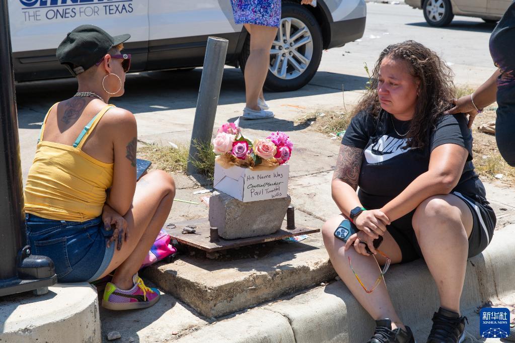 7月4日,人們在美國得克薩斯州沃思堡槍擊事件現場(chǎng)附近哀悼遇難者。