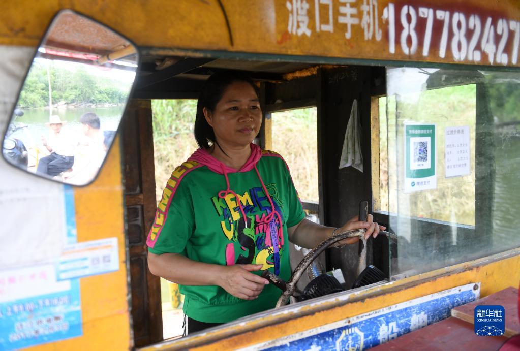 7月4日,在廣西來(lái)賓市興賓區遷江鎮大力村清水河上,李曼榮在駕駛渡船。