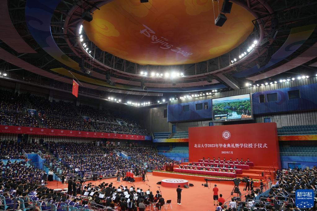 當日,北京大學(xué)2023年研究生畢業(yè)典禮暨學(xué)位授予儀式在北京大學(xué)邱德拔體育館舉行。