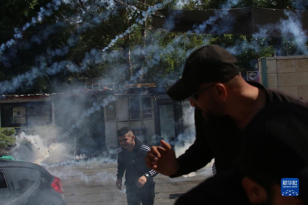 7月4日,在約旦河西岸杰寧地區,巴勒斯坦抗議者躲避以色列軍隊發(fā)射的催淚瓦斯。