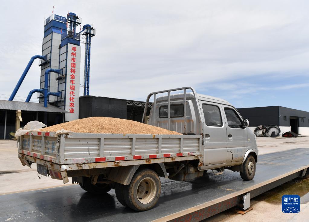 7月4日,在河南省鄧州市國裕金豐種植專(zhuān)業(yè)合作社,一輛運糧貨車(chē)在過(guò)磅。