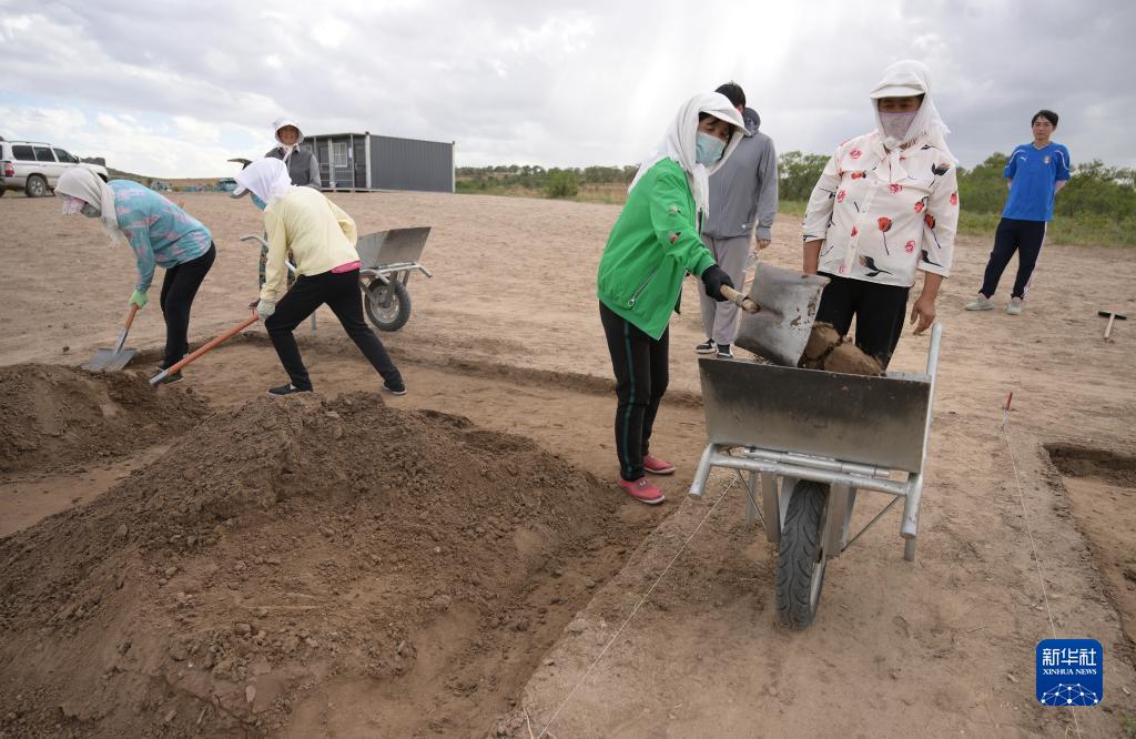 7月5日,考古隊工作人員在發(fā)掘現場(chǎng)展開(kāi)作業(yè)。