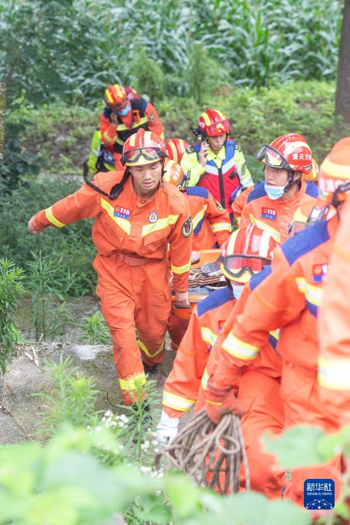 7月6日,在重慶市萬(wàn)州區長(cháng)灘鎮林場(chǎng)村,搜救人員在開(kāi)展搜救。
