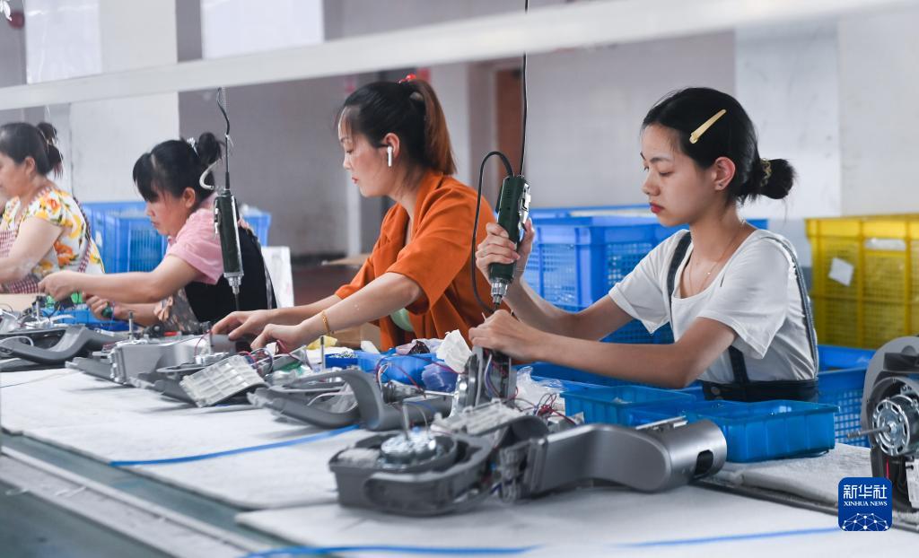 7月6日,工人在位于慈溪市的寧波榮電電器制造有限公司生產(chǎn)電風(fēng)扇。
