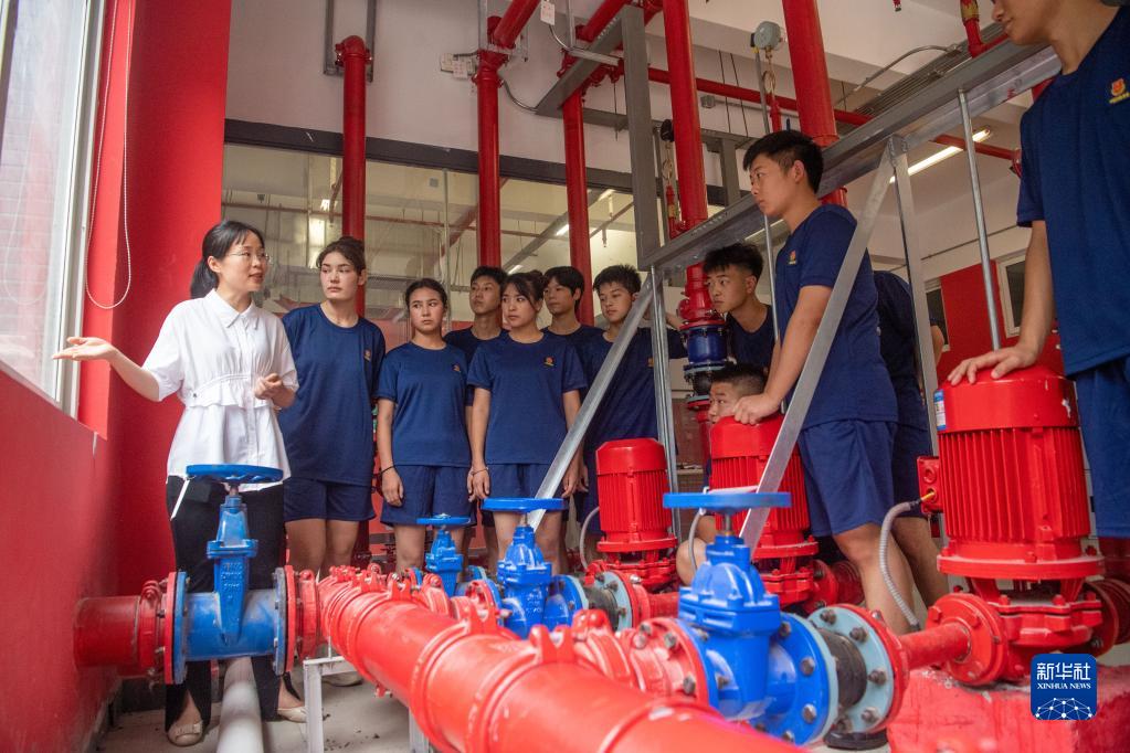 6月28日,熱依來(lái)·吉力力(左二)與同學(xué)們在建筑消防設備實(shí)訓課上。